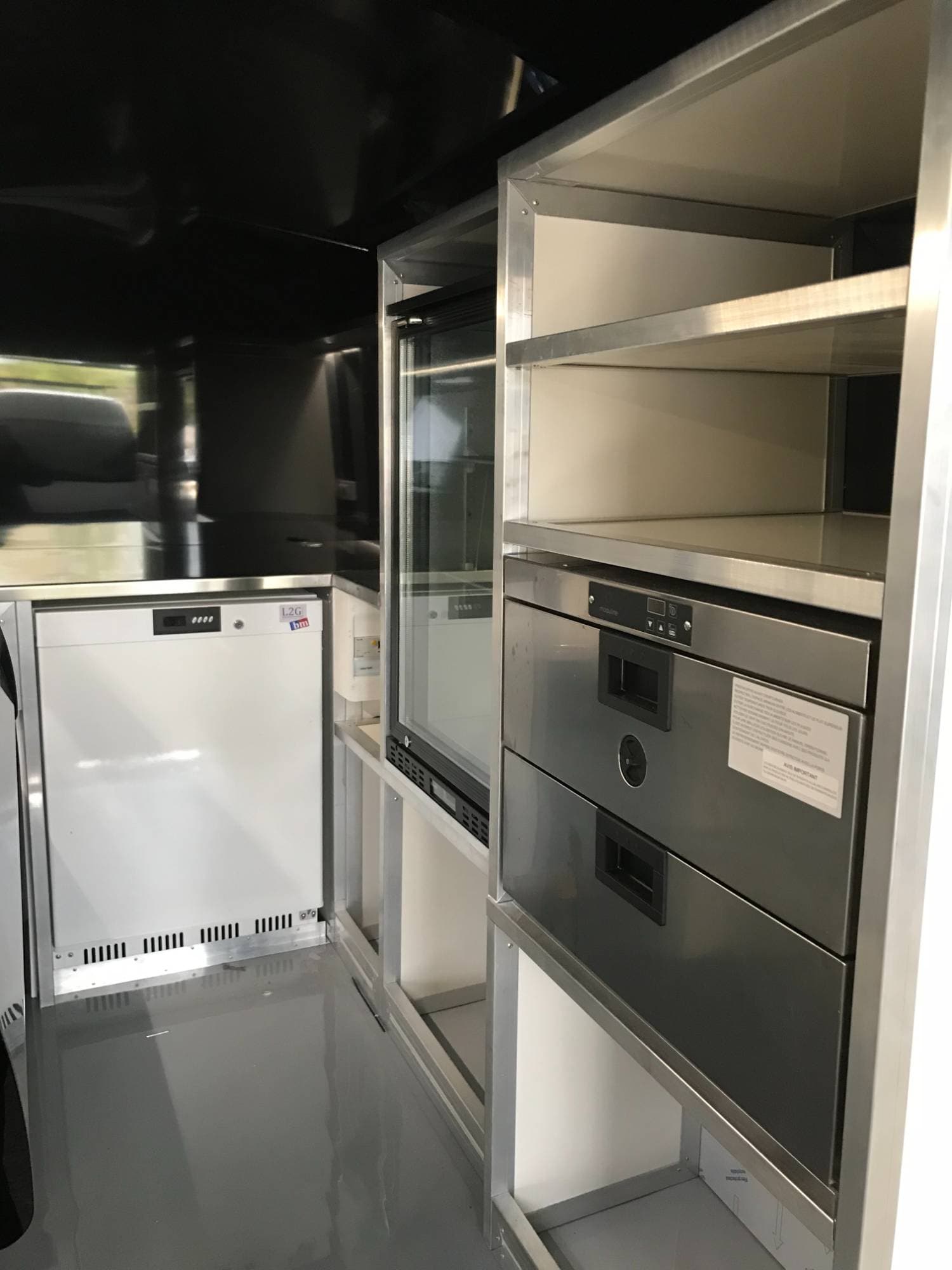 L'aménagement devait intégrer une cuisine professionnelle complète dans un espace contraint, avec tous les raccordements nécessaires pour une activité de restauration ambulante.