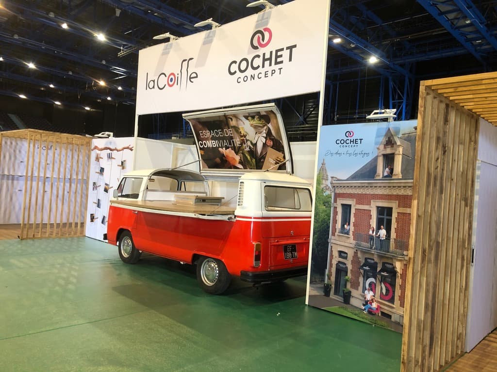 Le véhicule a été équipé pour accueillir du public et servir de point de vente éphémère ou d'espace d'animation lors d'événements professionnels.